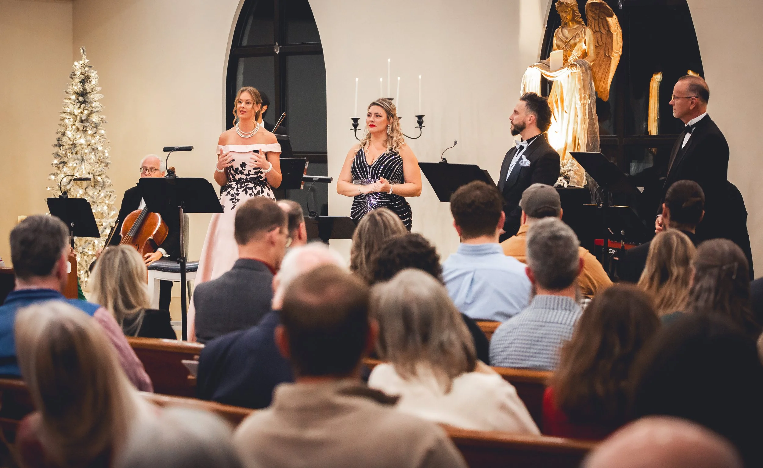 Join us for a night to remember! “A Candlelight Christmas Concert” features four extraordinary classically trained voices, accompanied by an ensemble of piano, cello, violin, guitar, mandolin, and flute. Elizabeth Rose, producer of this heartwarming concert, artistically arranged each song for the acoustically vibrant Chapel at Moon Shadow Haven. This venue is simply dreamy for musicians and concert-goers alike! With acoustics that make you feel engulfed in every melodic note, this concert is being performed without any amplification — just pure acoustic music in a candlelit chapel!